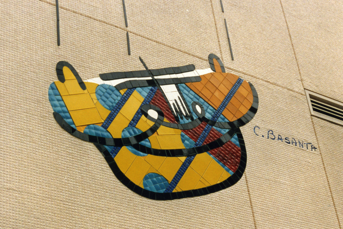 At a time when City of Tel Aviv new and wildly criticized bylaw required covering public buildings with small beige tiles, the mosaic mural that covers the entrance wall of the 9 floors spiral parkade added a blast of colours and humour to otherwise very grey environment.