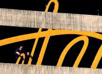 Commissioned by Even Ziv Parkade. This sculpture represents a calligraphic rendering of a car. Since the open area between the parapets had to retain as much “transparent air” as possible, the design was linear, adding an element of spontaneity to the necessarily monotonous architecture, and compliment the function of the building as a parkade.